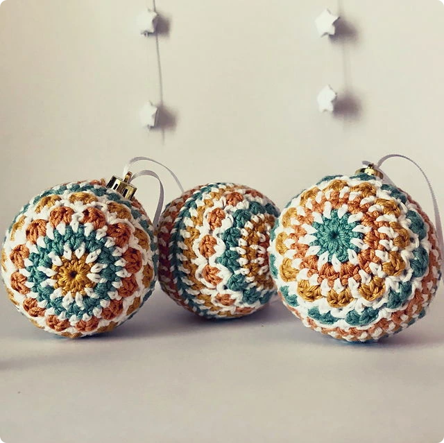 Crochet baubles can be customized in any color to match your holiday palette. Add glittery yarn or metallic threads to give them that extra sparkle.